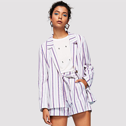 2018 Hot Striped Knit Short Sleeve Shirt Sweater