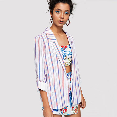 2018 Hot Notch Neck Pocket Detail Plaid Blazer