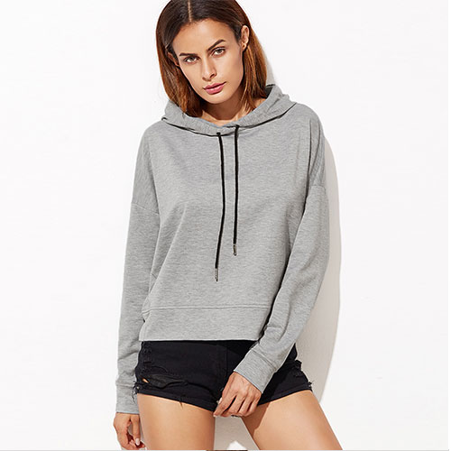 2018 Drawstring Neck And Hem Two Tone Sweatshirt